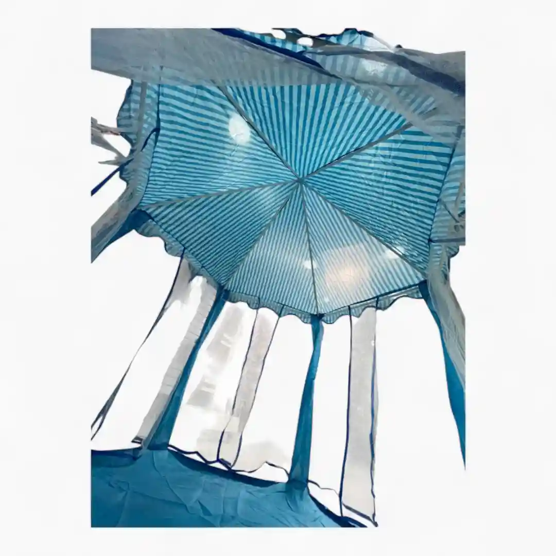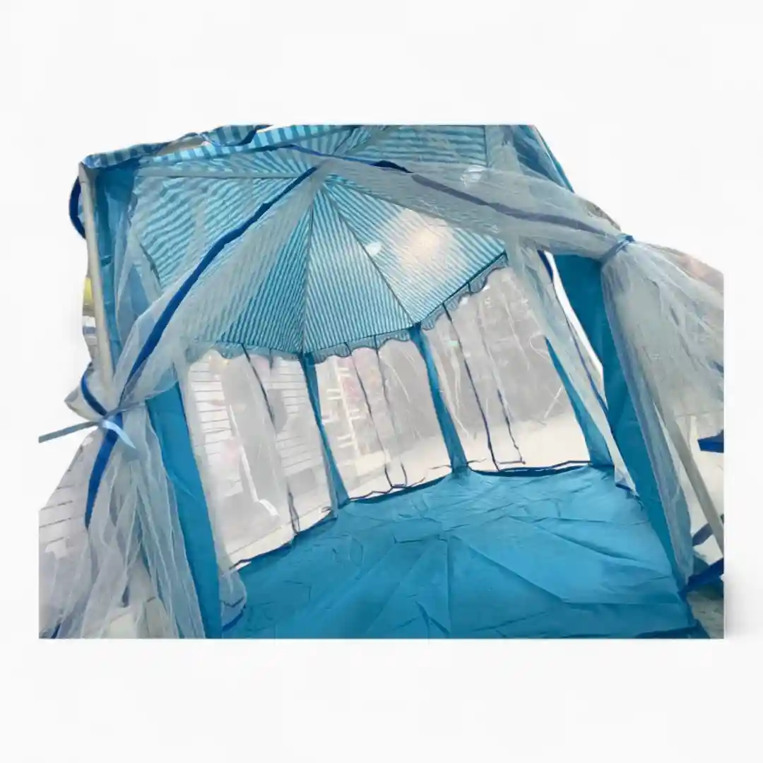 - Material y Construcción: Fabricado en tela de poliéster ligera sobre una estructura de alambre/varillas flexibles para un montaje sencillo.