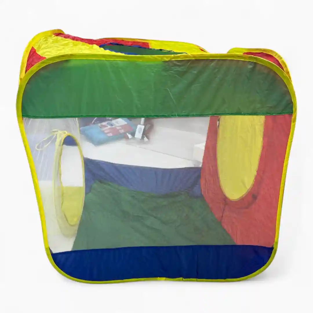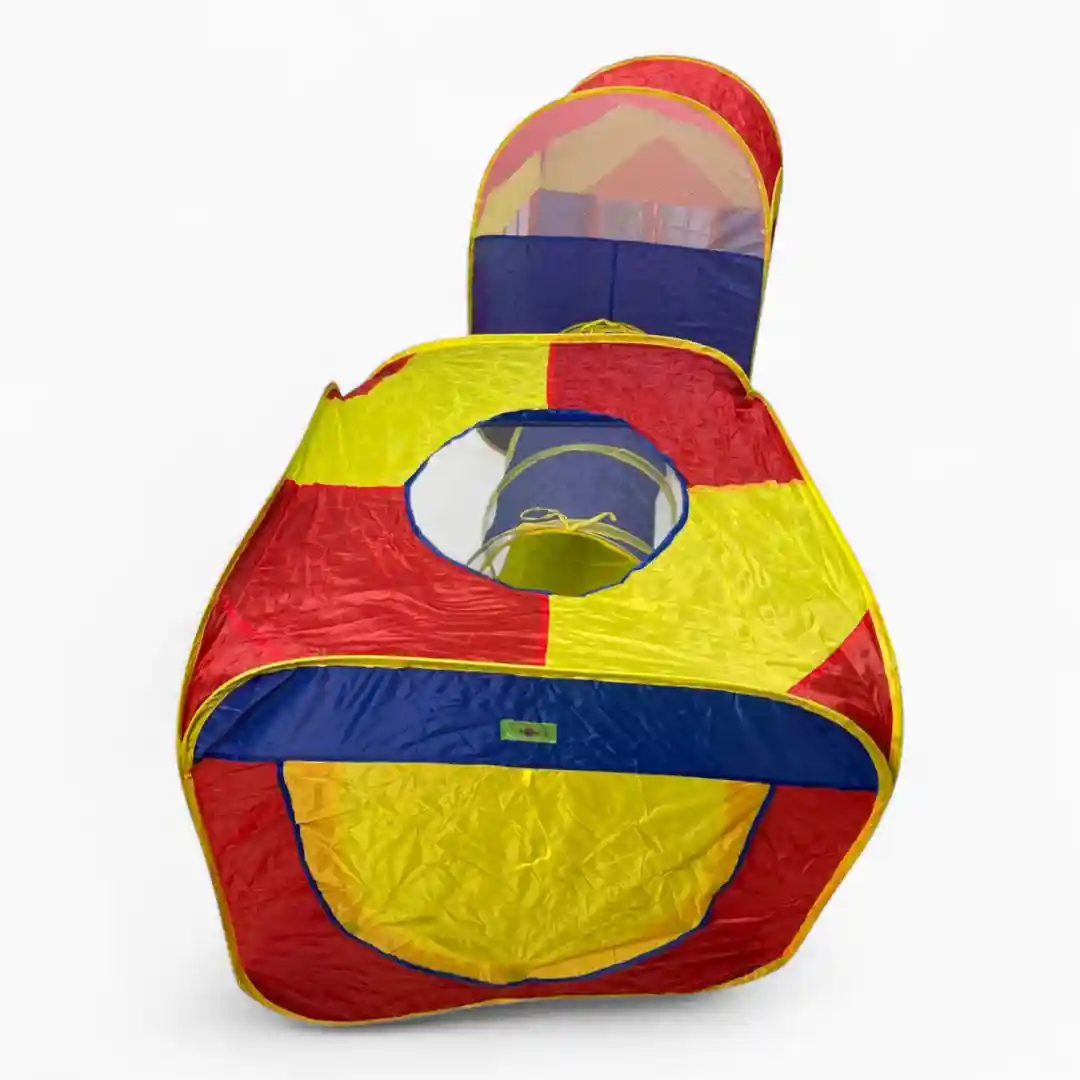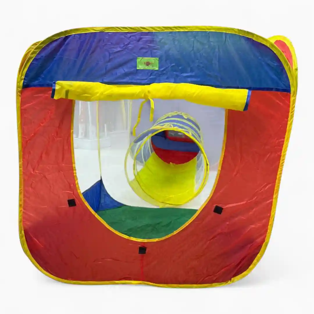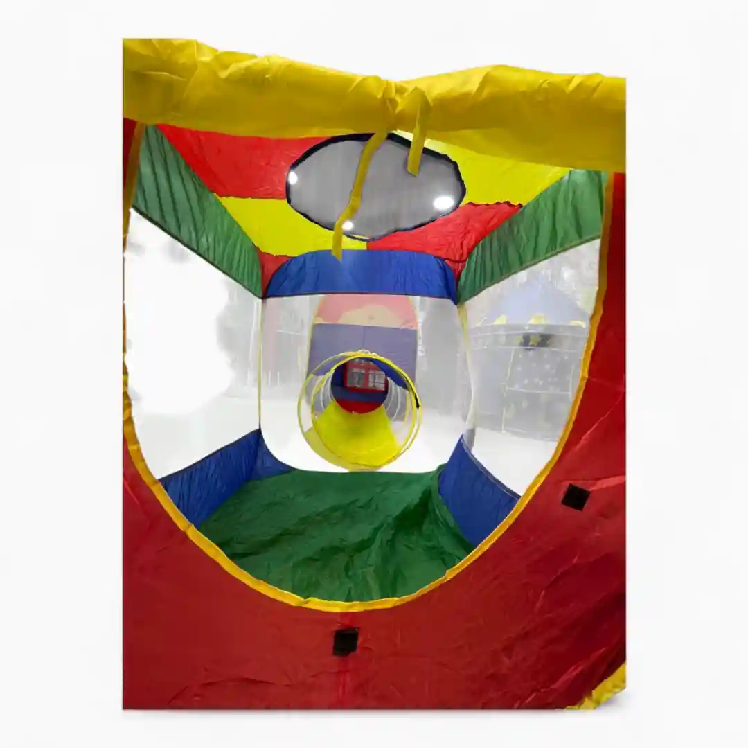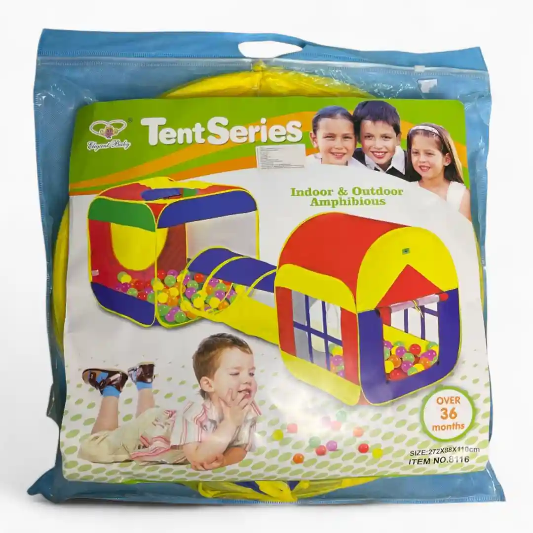 • Estructura Modular de 3 Piezas: Incluye una Carpa (Cabaña/Teepee), un Túnel y una Piscina de Pelotas.