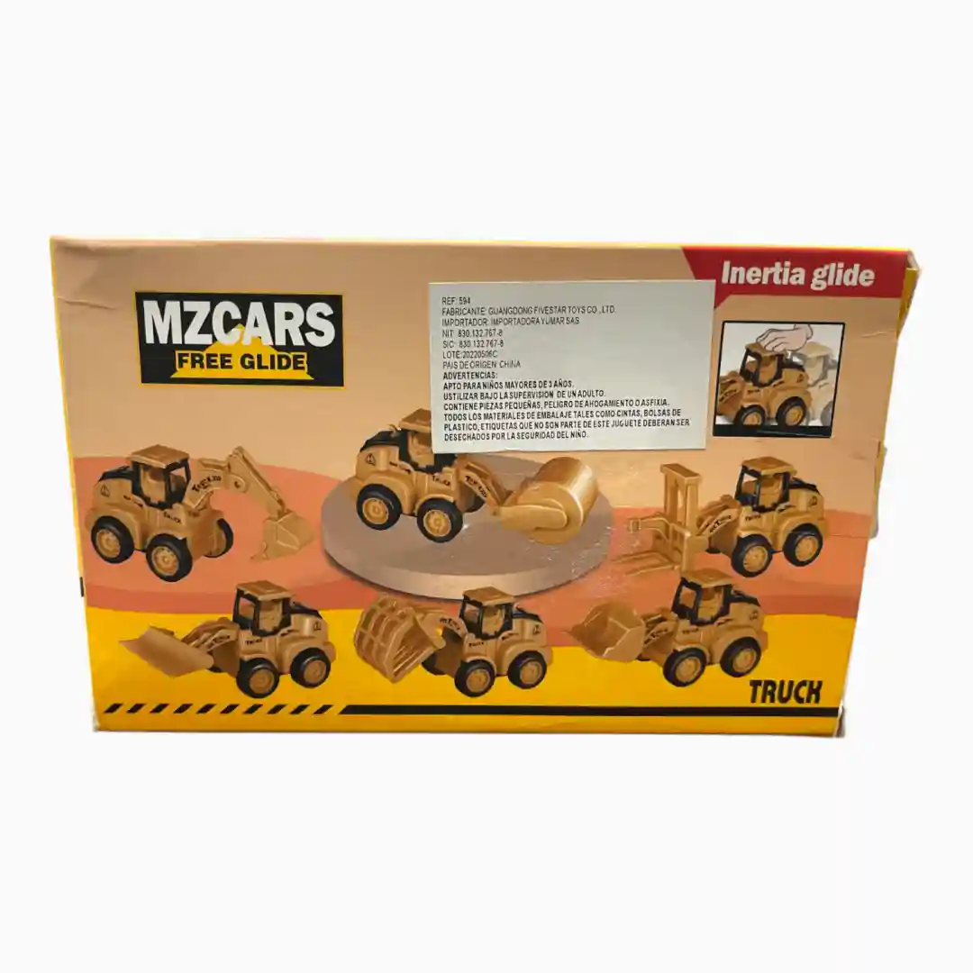 Línea de vehículos de construcción MZCARS, una serie de juguetes temáticos de alta demanda, enfocados en la maquinaria pesada de obras. Estos productos combinan la jugabilidad de piezas móviles con una mecánica de inercia o rueda libre, haciéndolos ideales para el juego imaginativo.