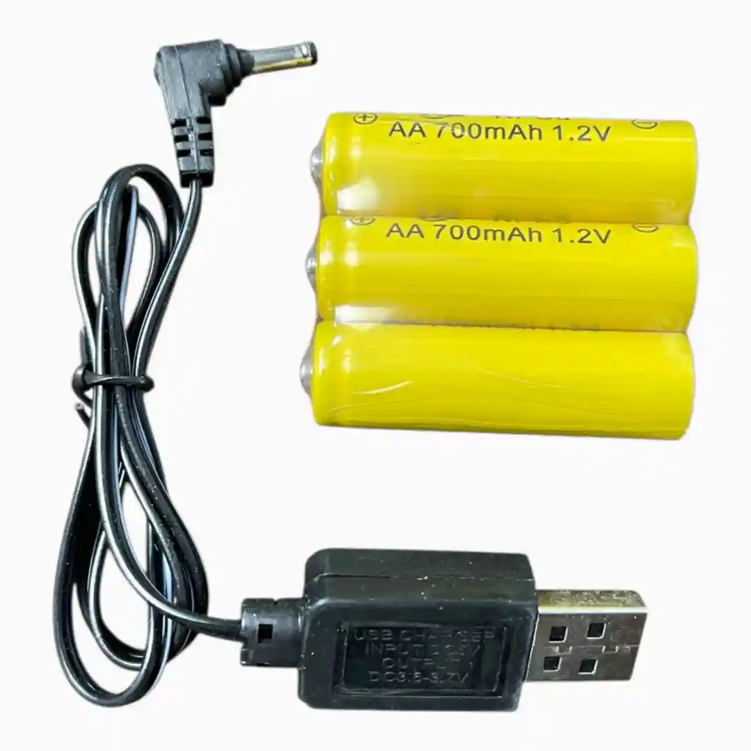 - 1x Paquete de Baterías Recargables AA 700mAh 1.2V (3 unidades, envueltas en paquete para el carro).