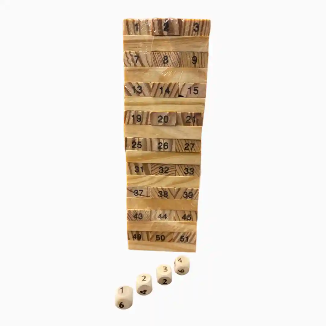 - Numeración: Los bloques presentan números impresos en sus caras, permitiendo el juego tradicional de equilibrio o la versión avanzada que incorpora dados.