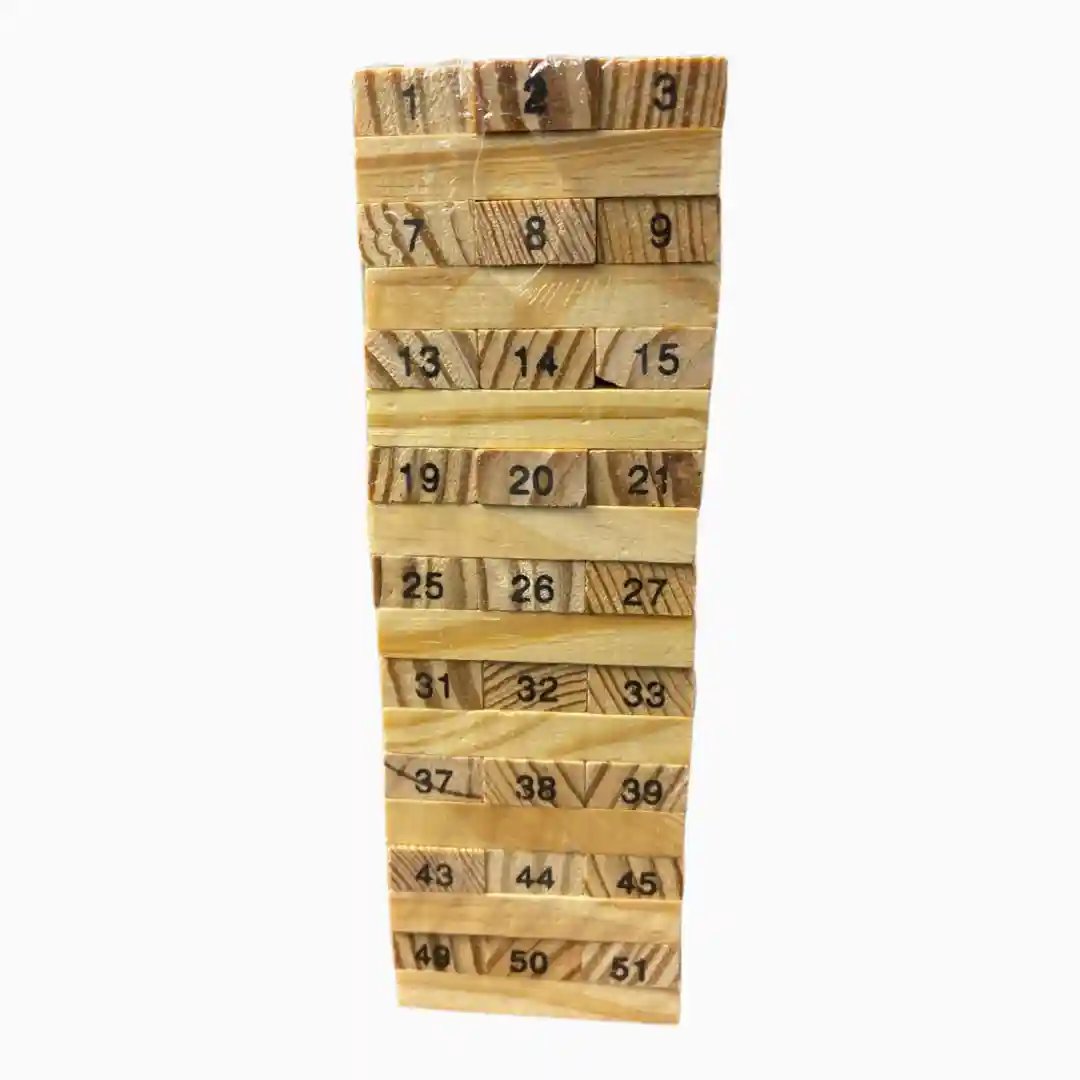 - Cantidad de Bloques: El set incluye 54 piezas de madera para construir una torre de 18 pisos de altura, lo que intensifica el desafío y el tiempo de juego.