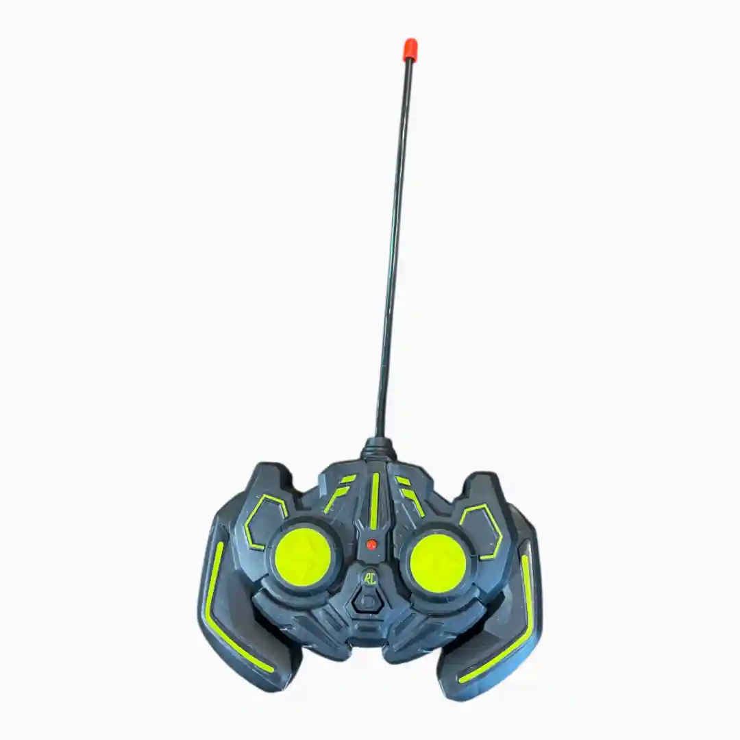 - Descripción del Contenido: El paquete incluye un carro de juguete a control remoto y su respectivo mando de control remoto. El vehículo tiene un diseño deportivo en colores negro y amarillo neón. El control tiene dos joysticks y botones para un manejo intuitivo.