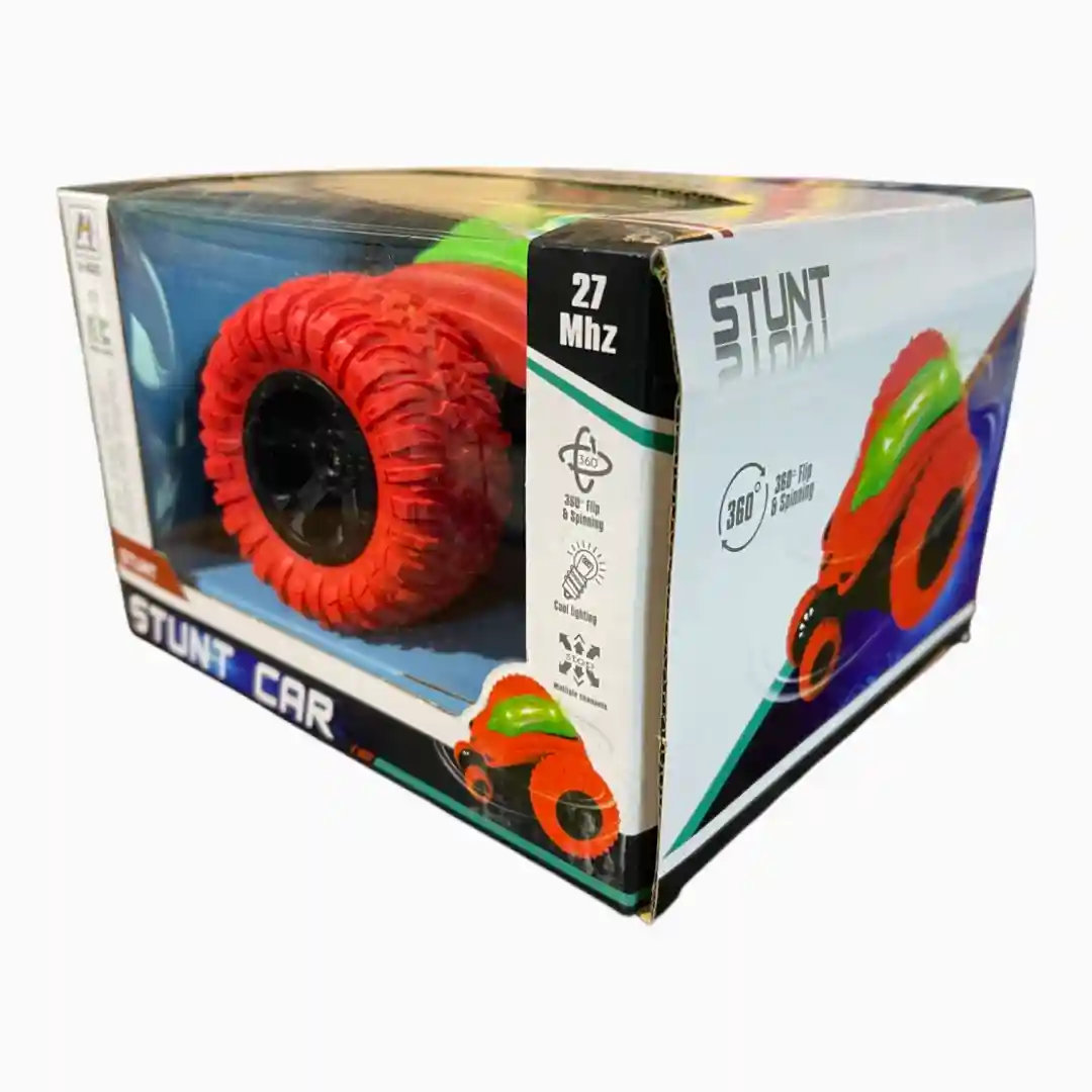 - Presentación del Empaque: El producto se presenta en una caja de cartón con una ventana transparente que exhibe el coche. El empaque muestra gráficos que resaltan sus capacidades de acrobacias y sus luces.