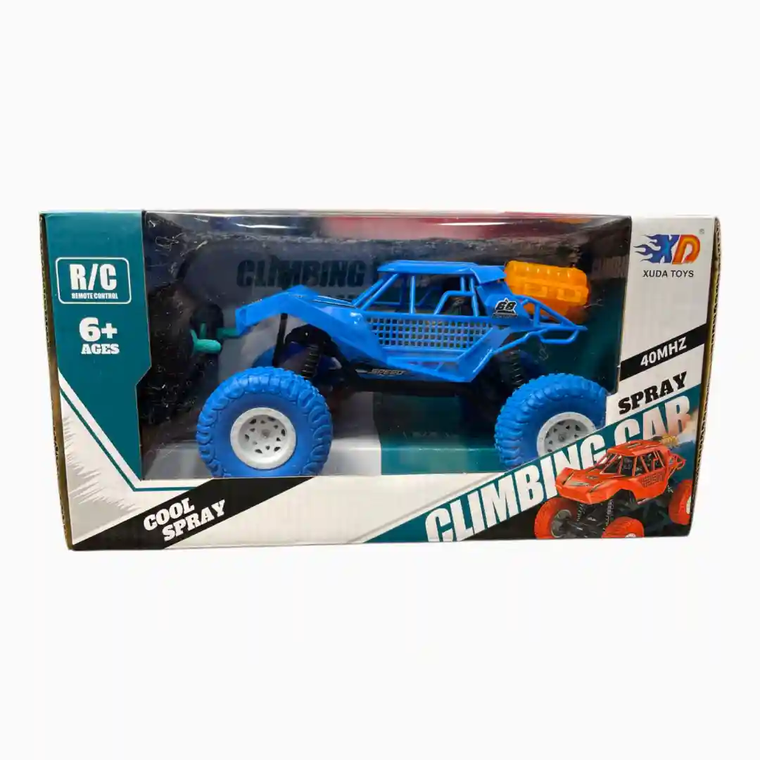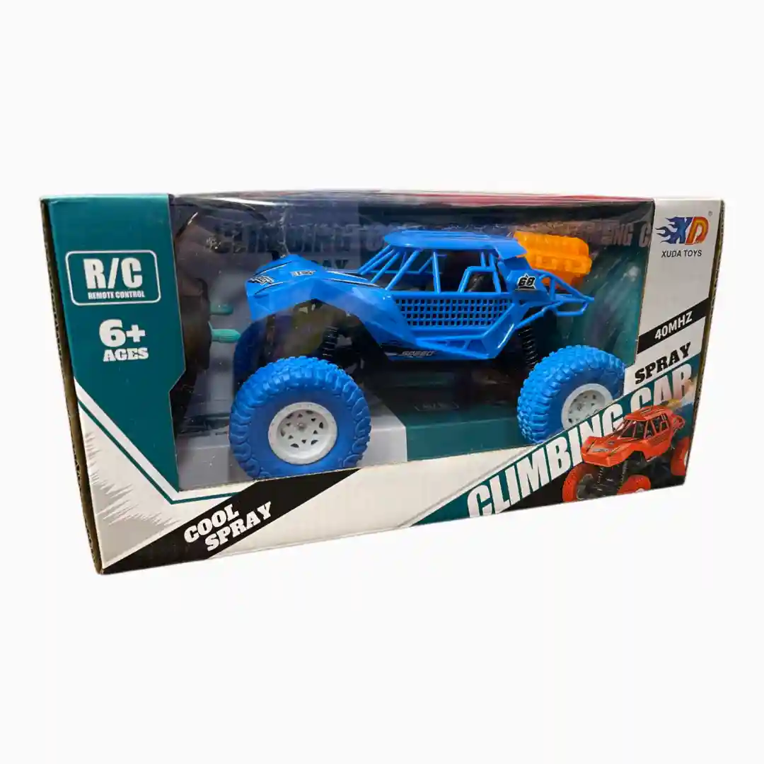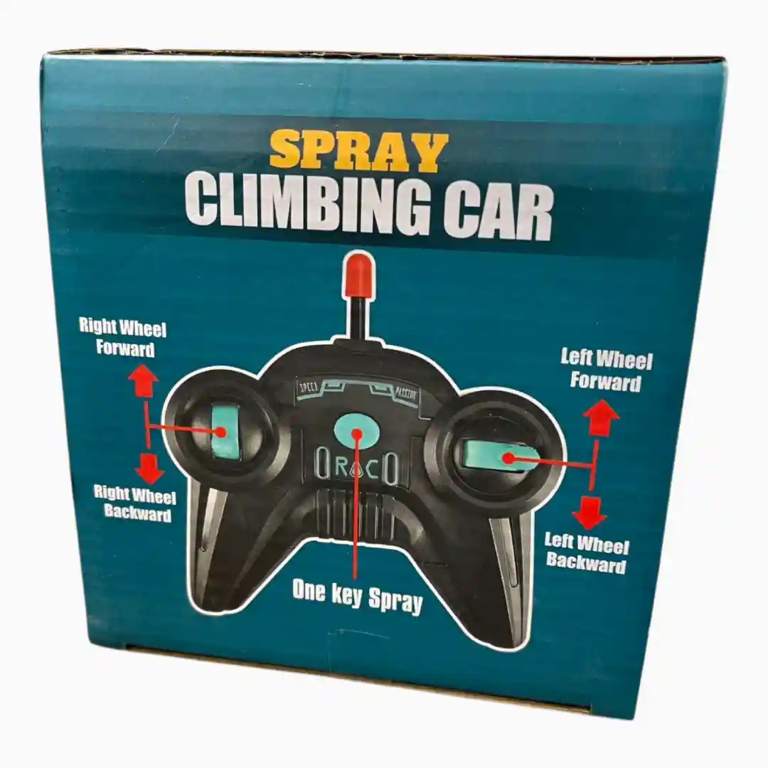 - Diseño del Empaque: Gráficos agresivos y dinámicos, enfocados en la velocidad y la acción («FAST RACER»). Destaca claramente las funciones R/C, CLIMBING CAR y SPRAY.