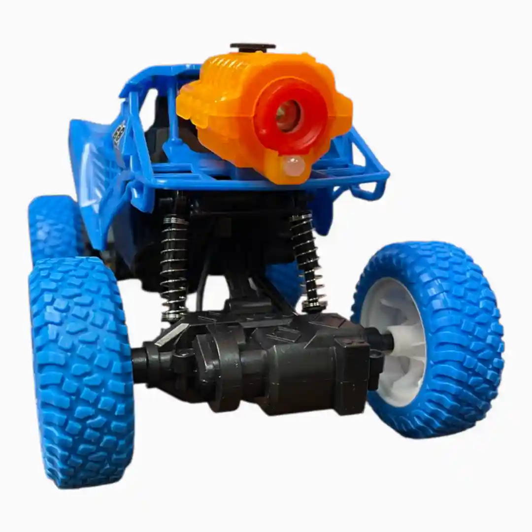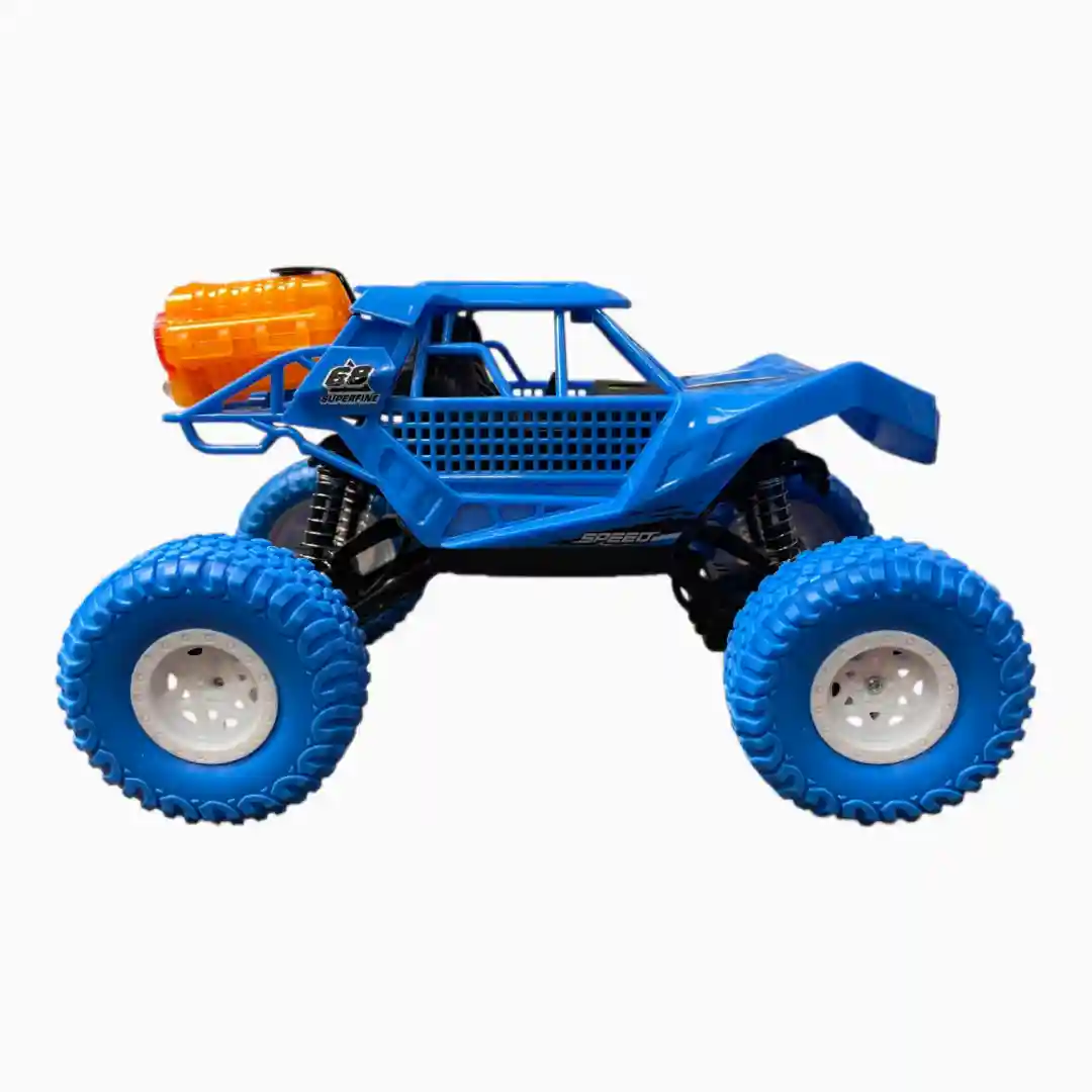 Coche Monster Truck teledirigido (R/C) de alto rendimiento, diseñado para escalar terrenos difíciles y con la característica adicional de emitir un «spray» (vapor frío) por la parte trasera, simulando óxido nitroso o humo.