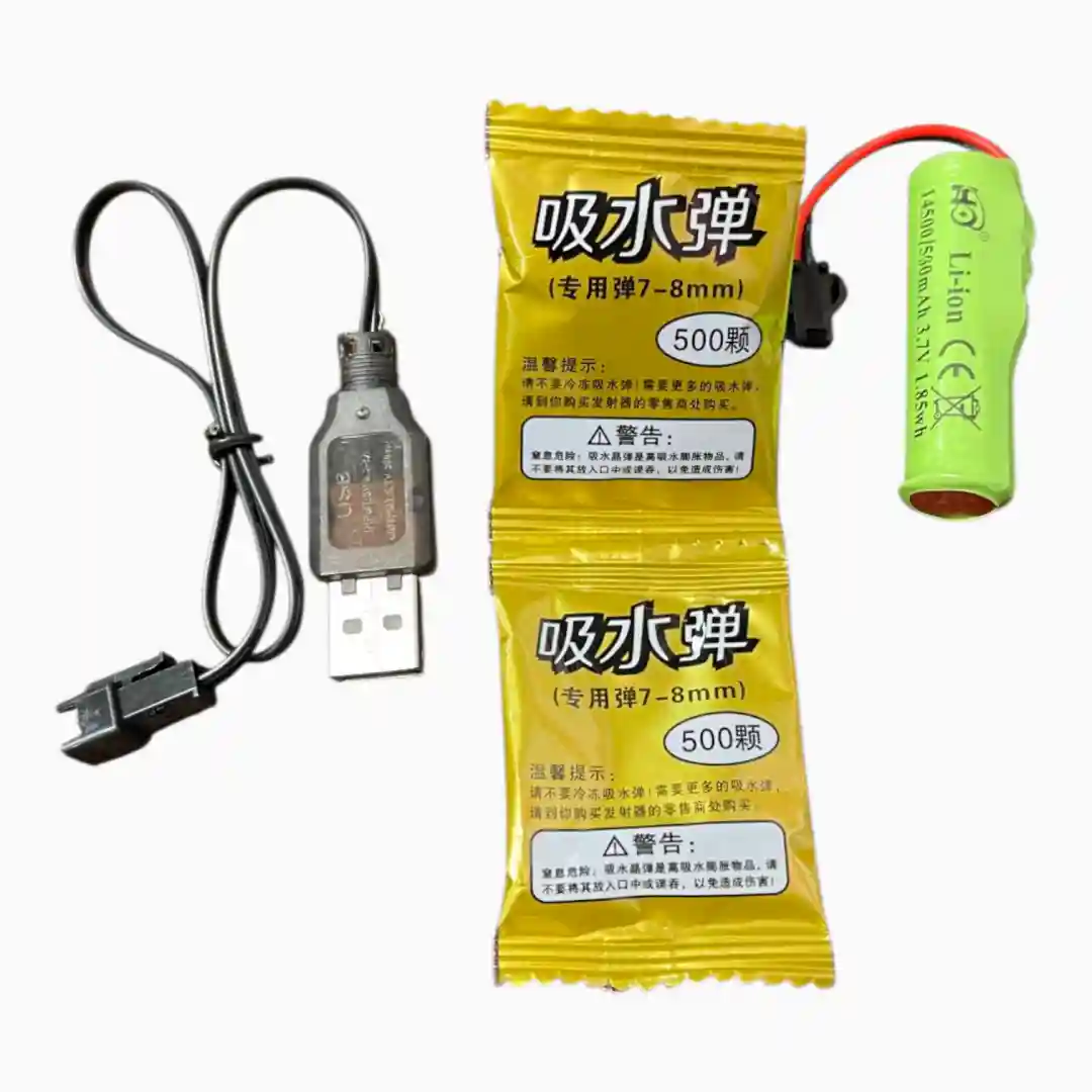 - Munición: Utiliza bolas de hidrogel (incluidas en el kit).