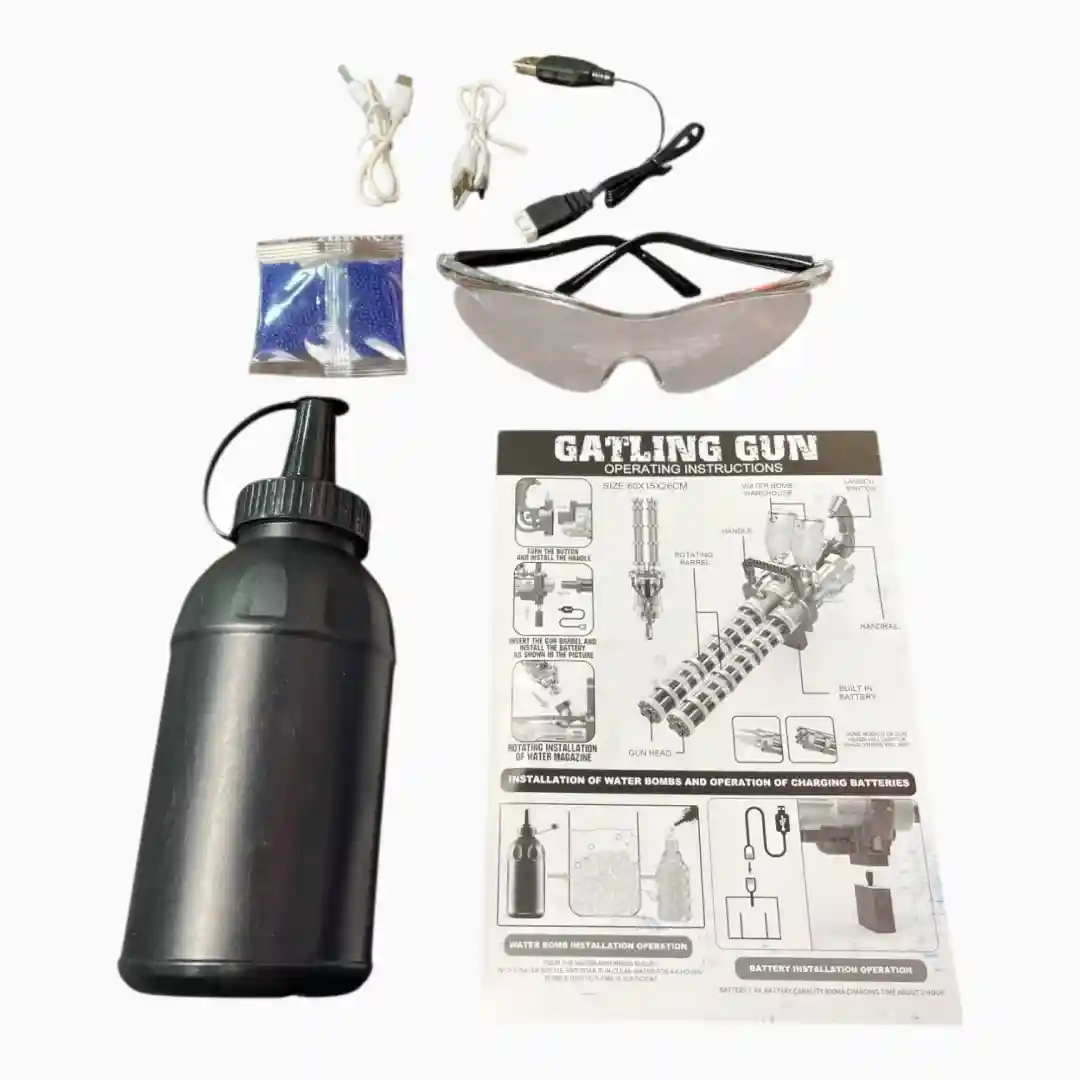 - 1x Lanzador de Bolas de Gel ‘Gatling Gun’ Doble Barril.