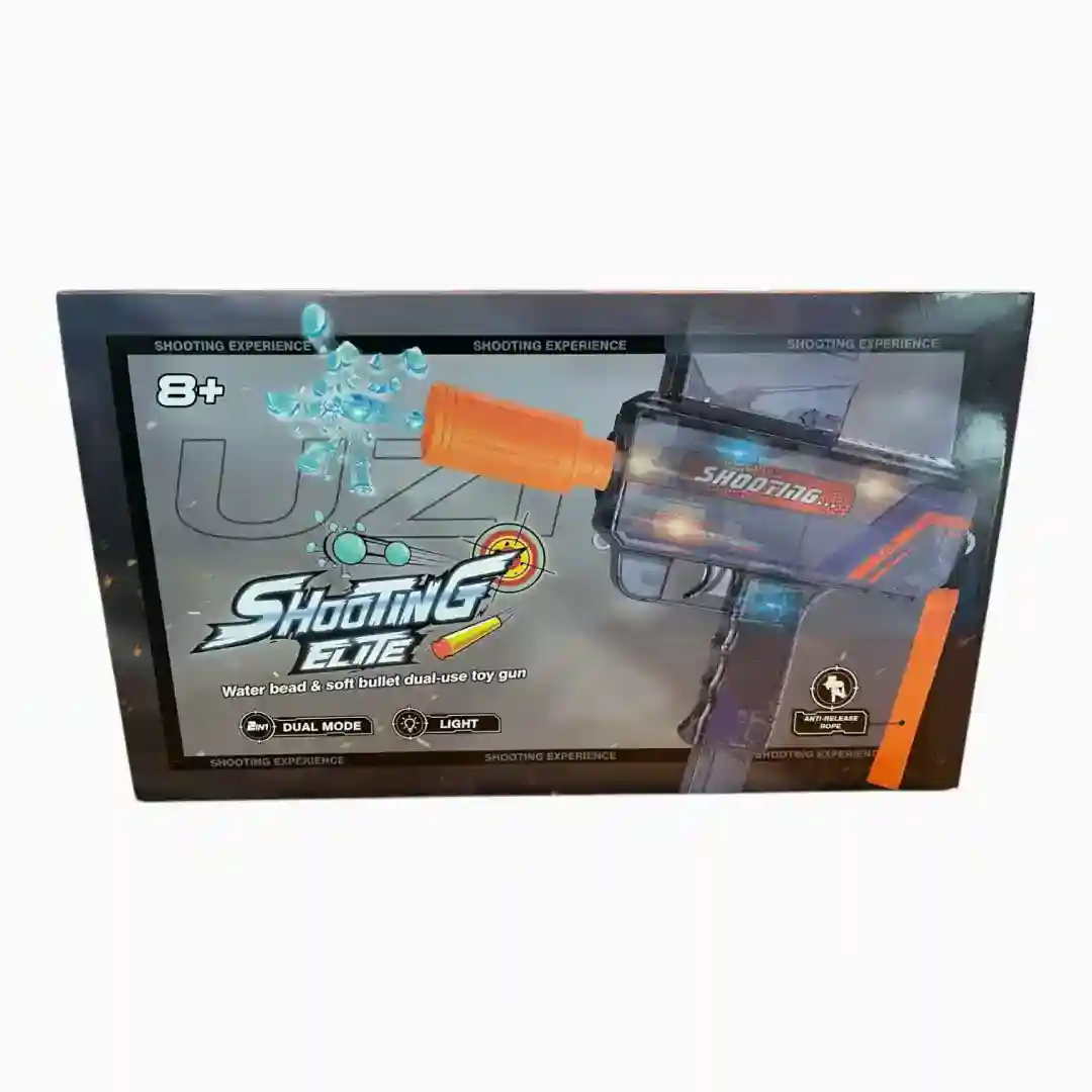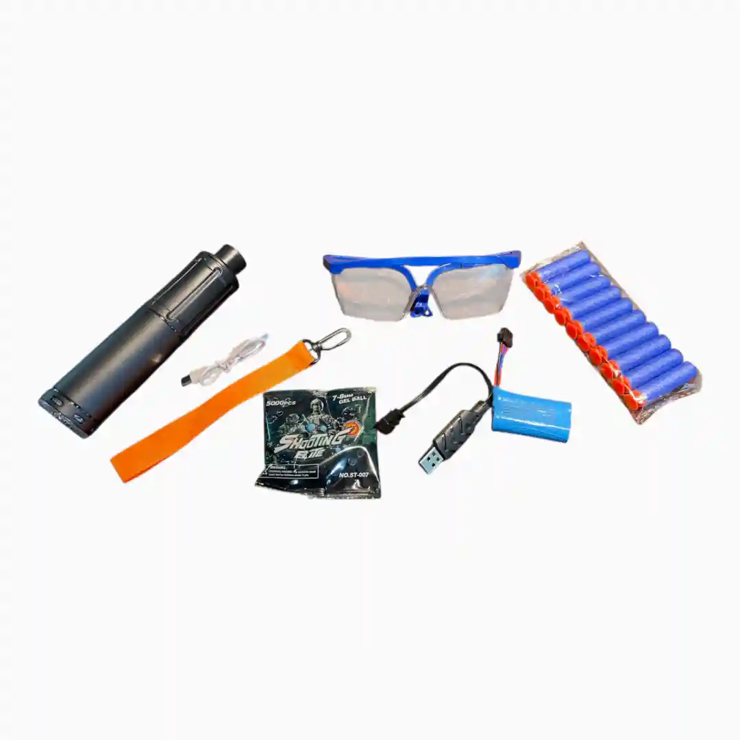 - Sistema de disparo: Sistema dual que permite lanzar bolas de hidrogel y dardos de espuma.