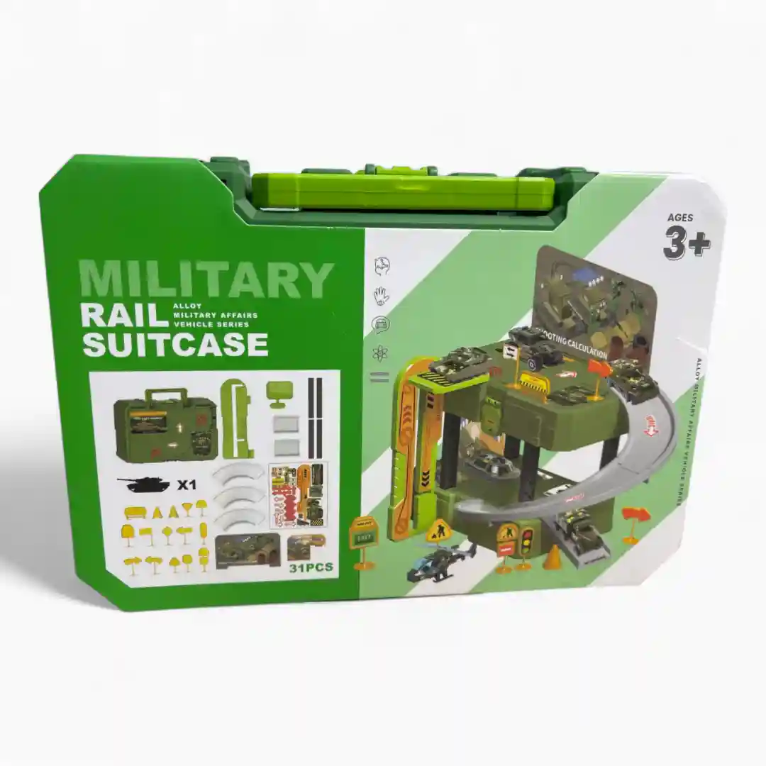 Maleta que se Transforma en Base: El estuche se abre y se convierte en una Base Militar de dos niveles con rampas y una estructura de pista. Es un diseño inteligente que maximiza el espacio y la jugabilidad. Una vez montada, esta base sirve como centro de entrenamiento y despliegue para las misiones más audaces.