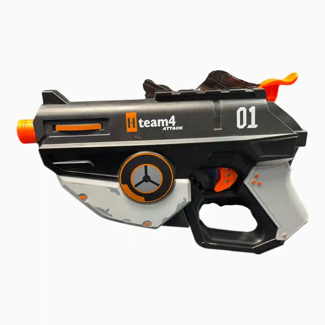 - Mecanismo: Pistola de juguete de acción manual. No requiere baterías.