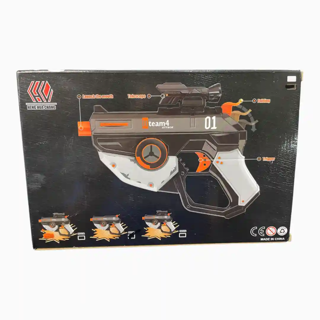 Lanzador de juguete de acción manual con un diseño futurista y moderno (inspiración Sci-Fi), ideal para el juego de rol y la recreación. Ofrece un mecanismo simple y seguro, apuntando a un excelente rendimiento en ventas gracias a su atractivo estético.