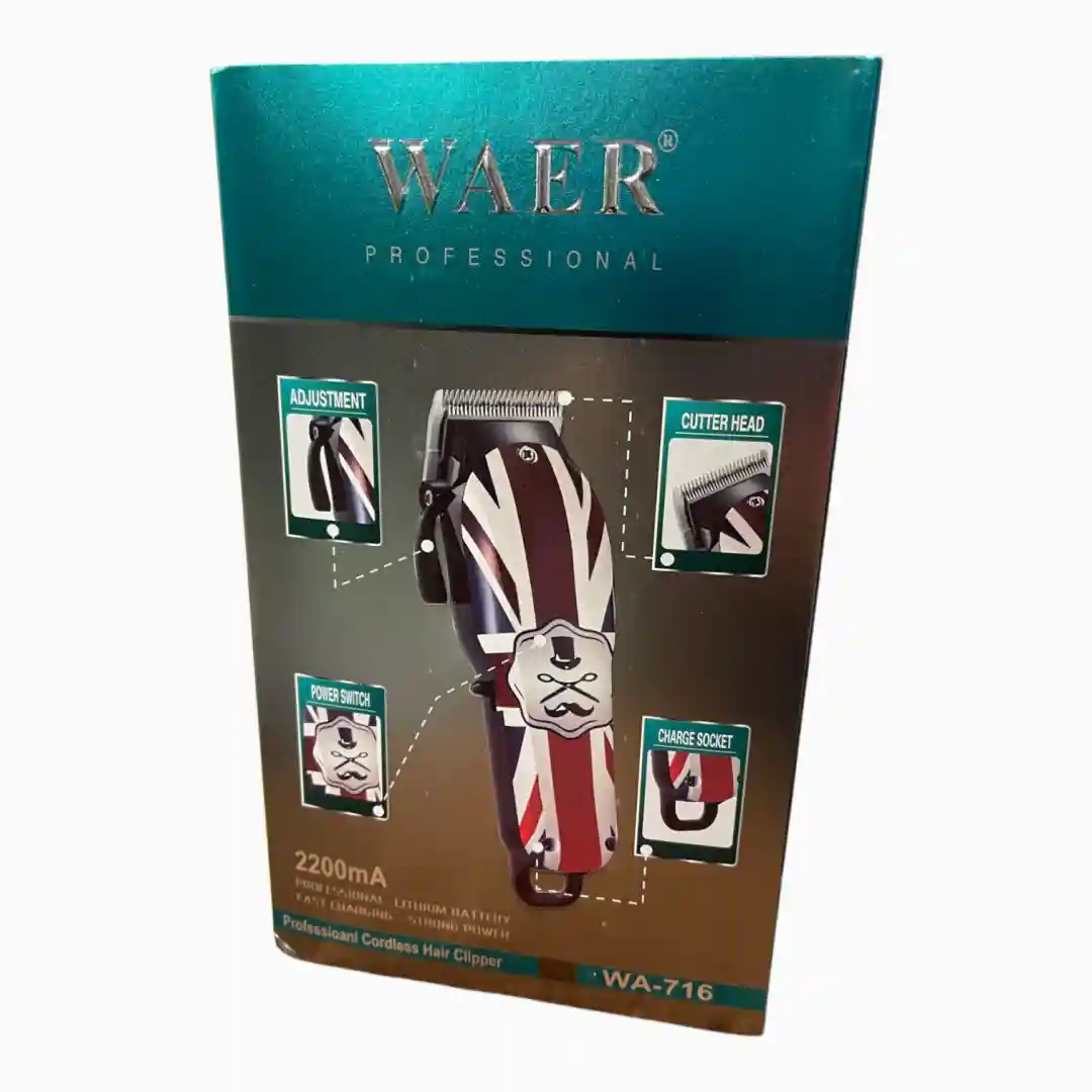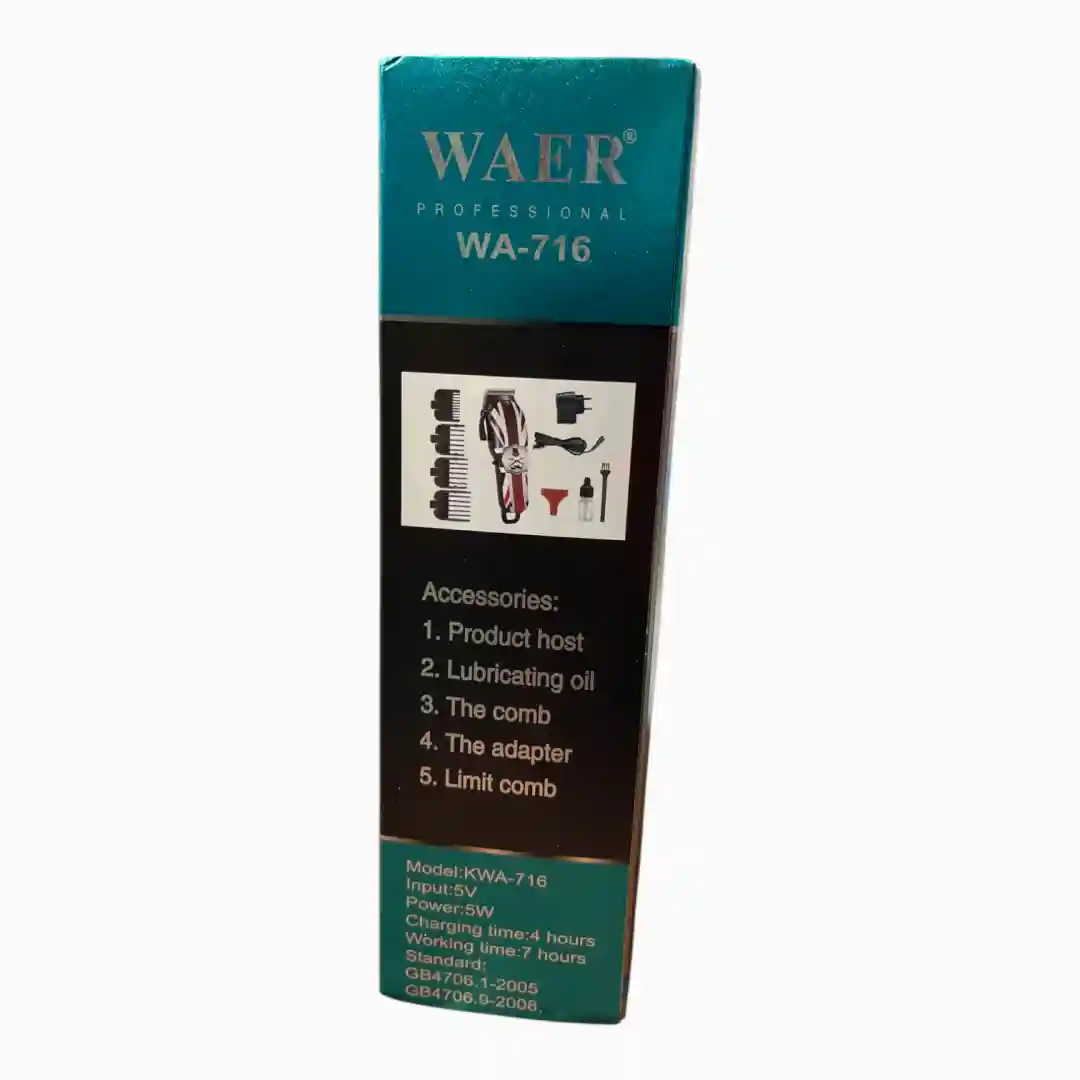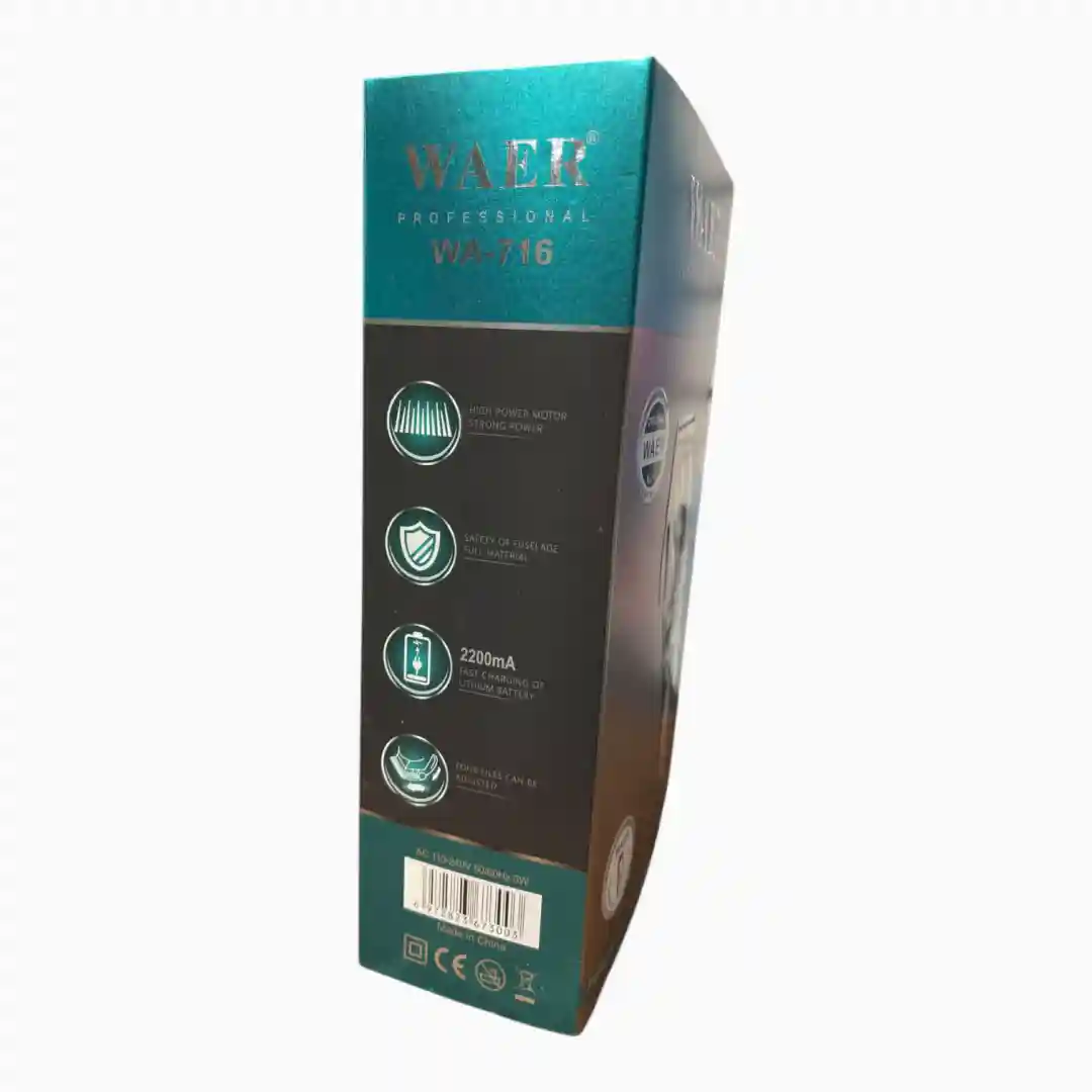 Cortadora de cabello profesional, potente y con un diseño atractivo que asegura alta demanda. La máquina WAER WA-716 es una inversión estratégica para su inventario de productos de belleza y cuidado personal.