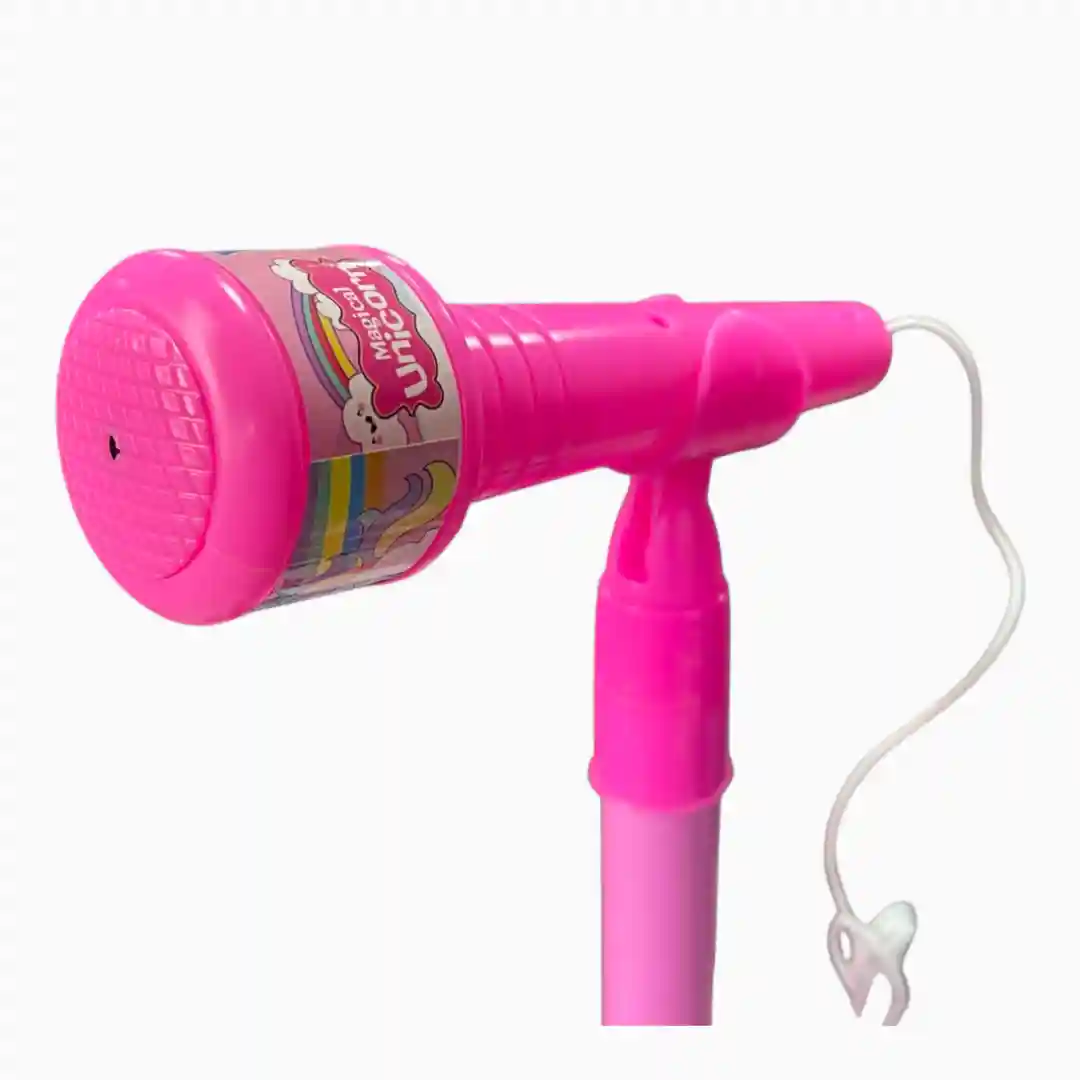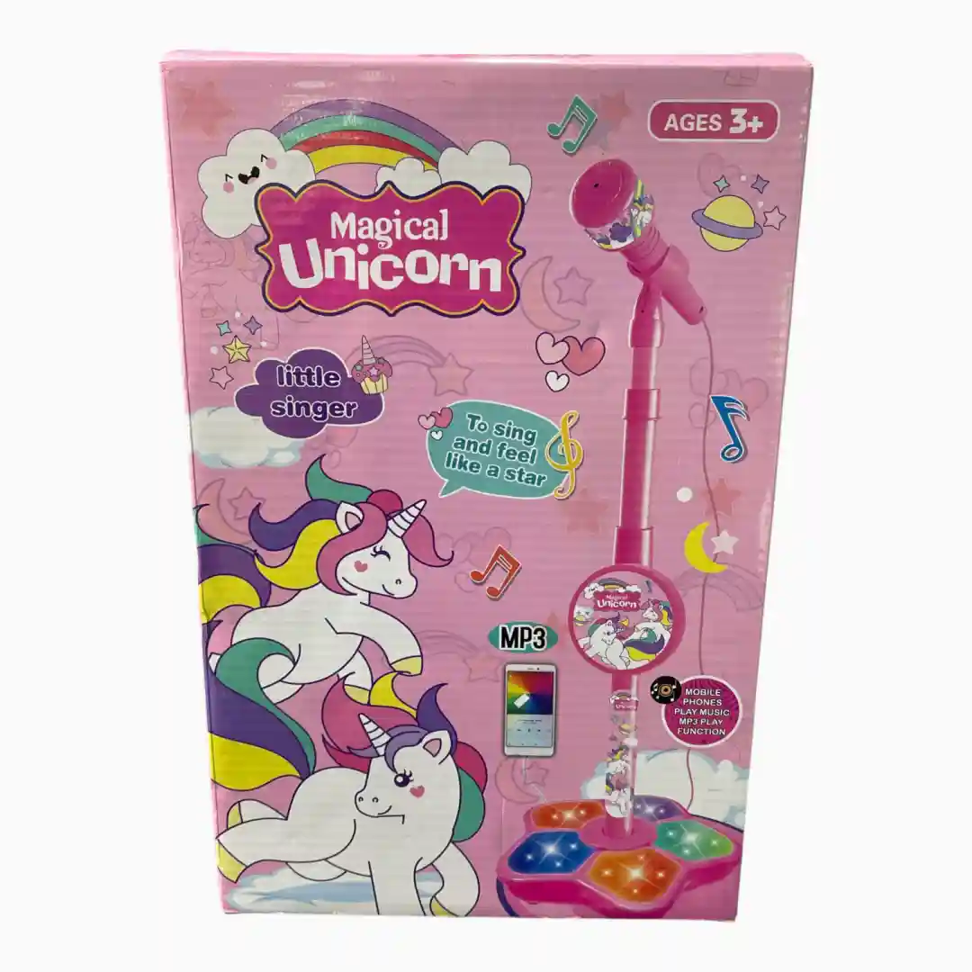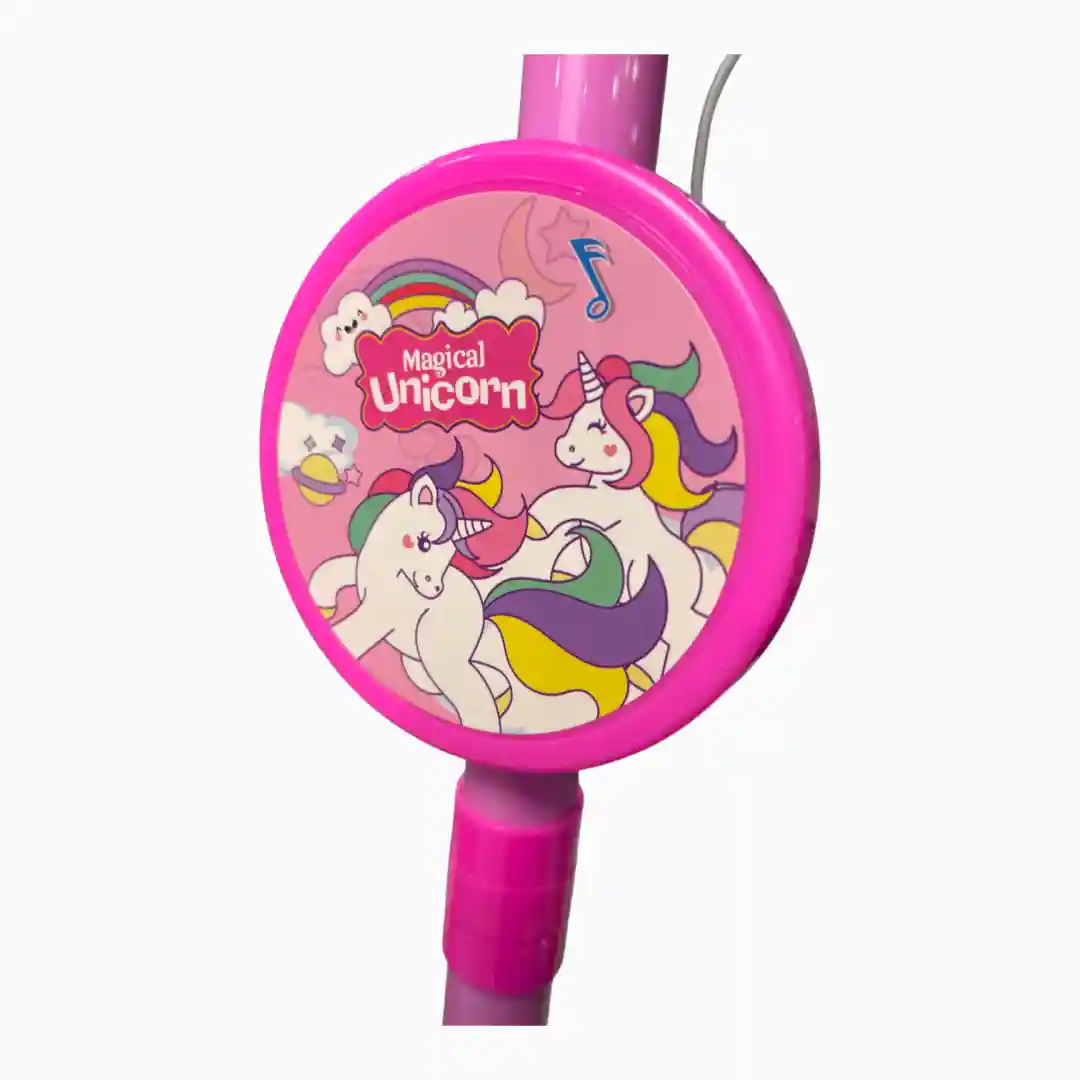 Set de juguete interactivo diseñado para el juego de rol musical, permitiendo a los niños simular ser estrellas del pop. Este producto de alta demanda se ofrece en múltiples variantes temáticas populares (Unicornio, J.K., Bluey), maximizando el atractivo para diferentes segmentos del mercado infantil.