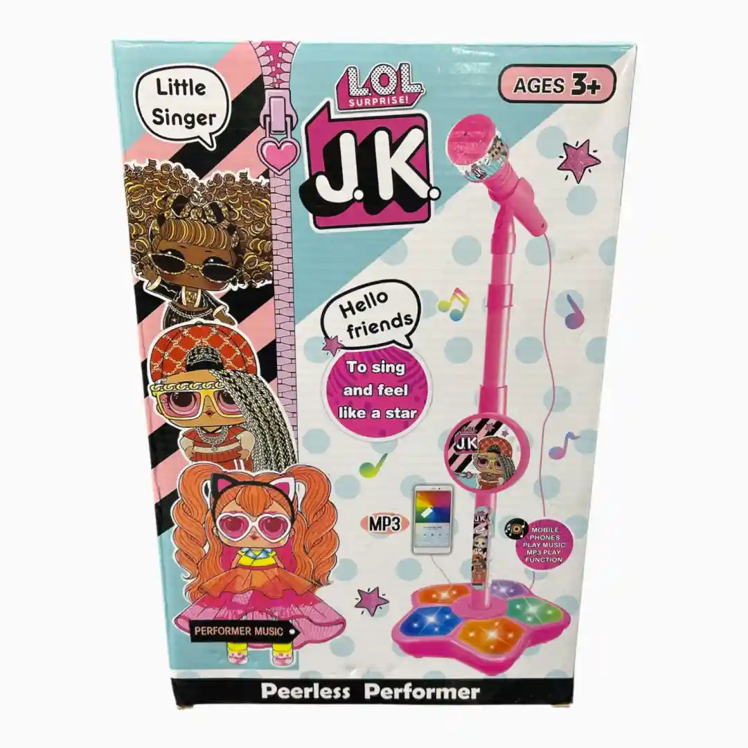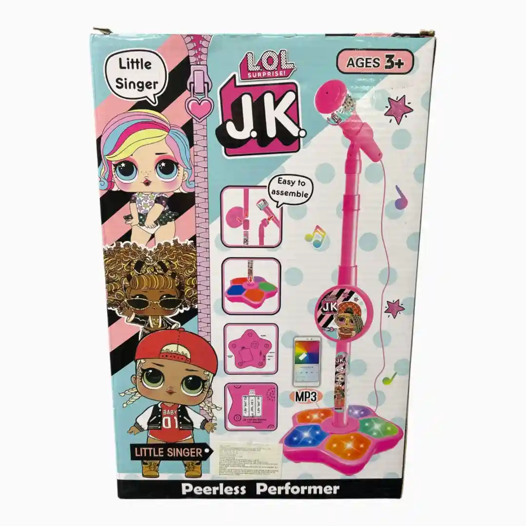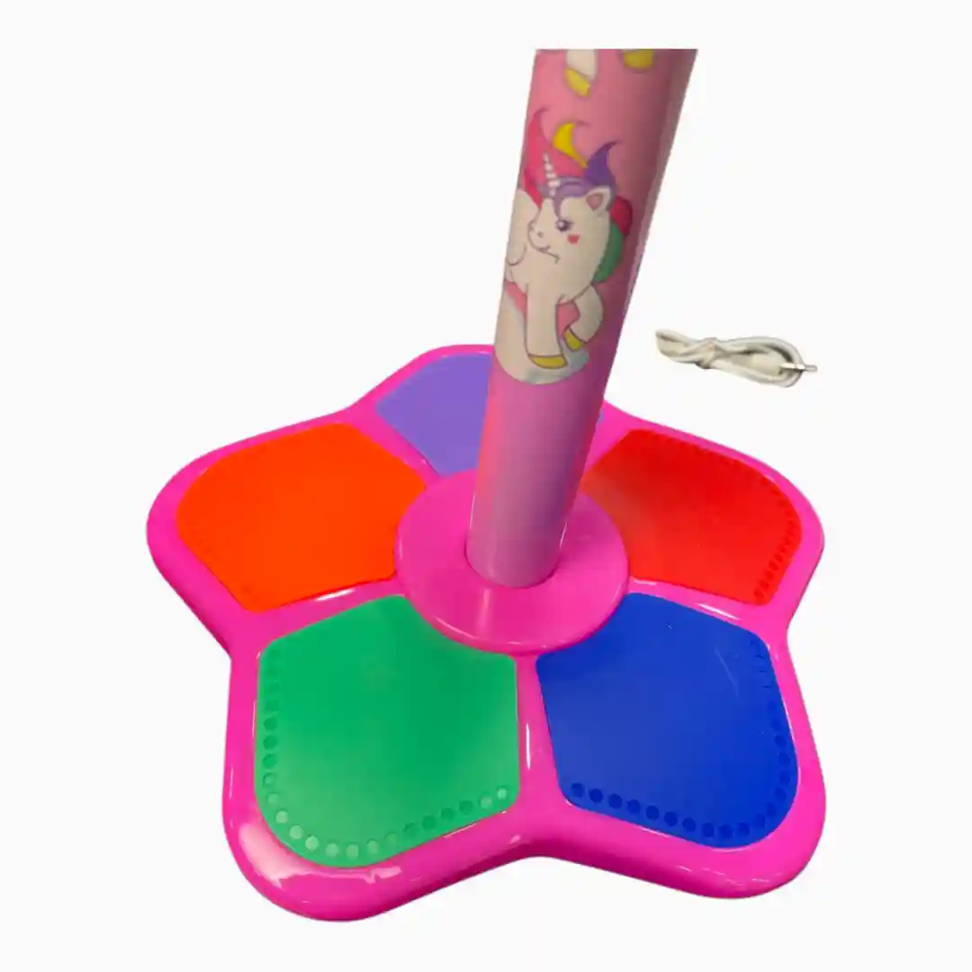 Set de juguete interactivo diseñado para el juego de rol musical, permitiendo a los niños simular ser estrellas del pop. Este producto de alta demanda se ofrece en múltiples variantes temáticas populares (Unicornio, J.K., Bluey), maximizando el atractivo para diferentes segmentos del mercado infantil.