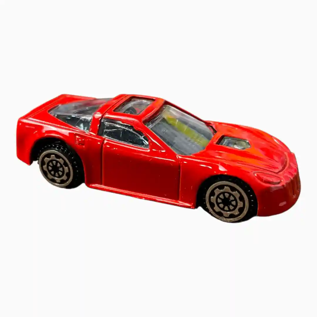 - 4x Carros de Aleación Metálica con diseños variados (ej. Deportivo rojo, Deportivo amarillo, SUV gris, Pick-up azul).