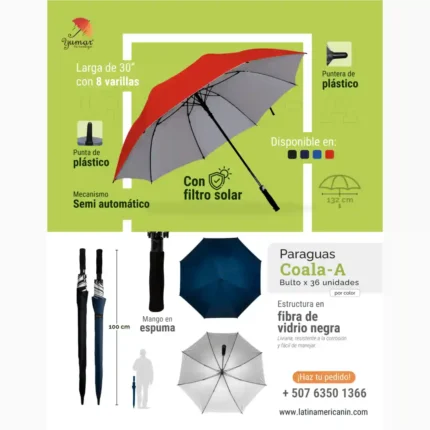 - Dimensiones Abierto (Diámetro): 96 cm. Cobertura ideal para una protección personal amplia.