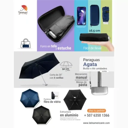 Paraguas compacto de mecanismo manual, diseñado con refuerzo Antibrisa y amplia cobertura, en presentación surtida (colores ejecutivos como negro y azul marino, según disponibilidad de fábrica).