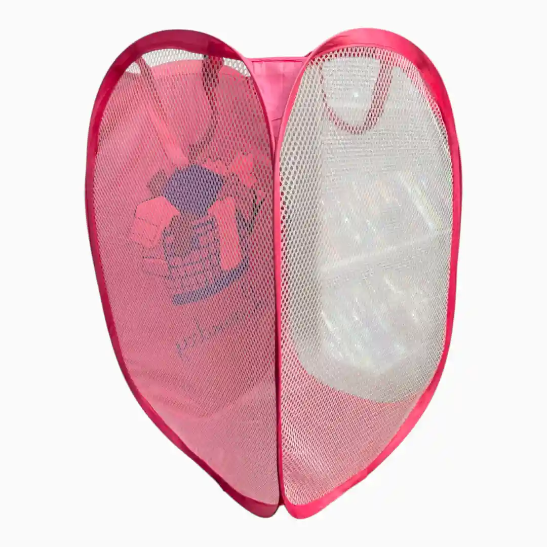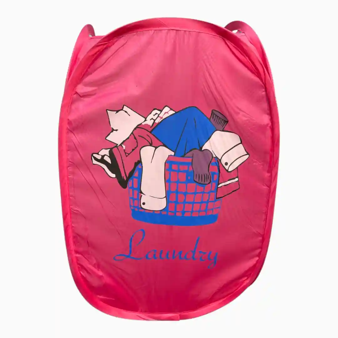 - 1 Cesta de Ropa Plegable Pop-Up (Color Fucsia/Rosa con diseño).