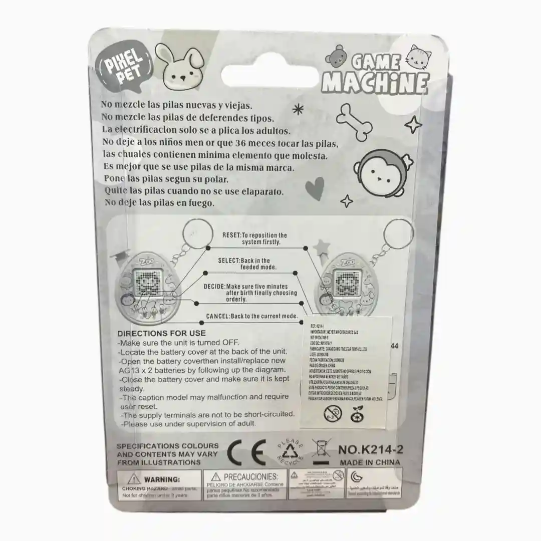 Versión actualizada de la popular mascota virtual portátil, conocida como «Pixel Pet Game Machine». Un juguete clásico de simulación que reta a los usuarios a cuidar y mantener a una mascota electrónica a través de alimentación, juegos y atenciones. Presentación con diseño moderno y colores pastel, ideal para el público infantil y adolescente.